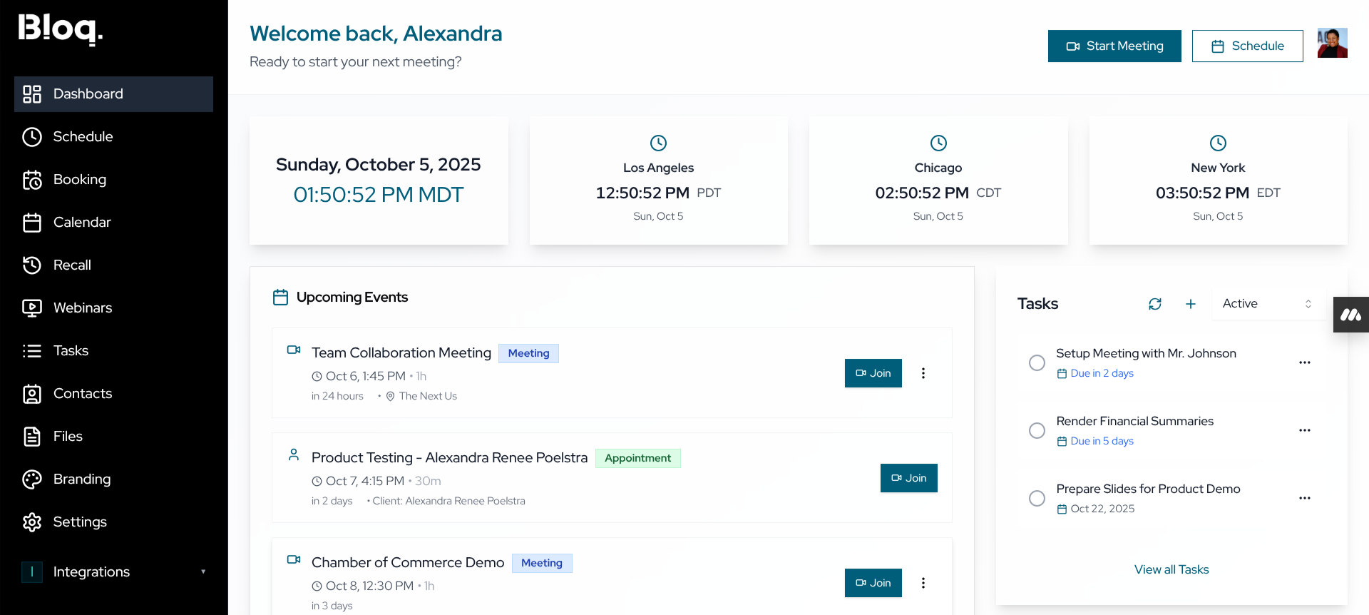 Bloq takes meetings and webinars to the next level with features, collaboration tools and more that puts productivity and excitement back into your workflow.
